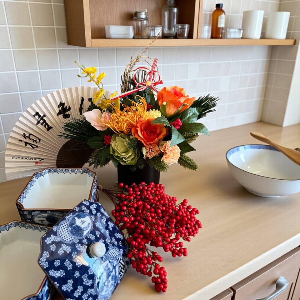 忙しい年末年始でも、身近なもの、例えば扇子やお猪口、お十箱などのお正月飾りに相応しい食器類など少しの工夫で部屋の雰囲気を格上げできるのが小物の力です。花やアレンジを主役にするだけでなく、周囲の空間とのバランスを整えることで、統一感のある上質な空間を作り出せます。ここでは「小物プラス」で生まれる効果と、取り入れ方のコツを具体的に紹介します。選ぶ際のポイントとしては、素材感の統一、色のまとまり、そして動線の妨げにならない配置が鍵になります。小ぶりのアイテムを複数点取り入れると、視線が自然と花材へ誘導され、部屋全体の印象がぐっと洗練されます。