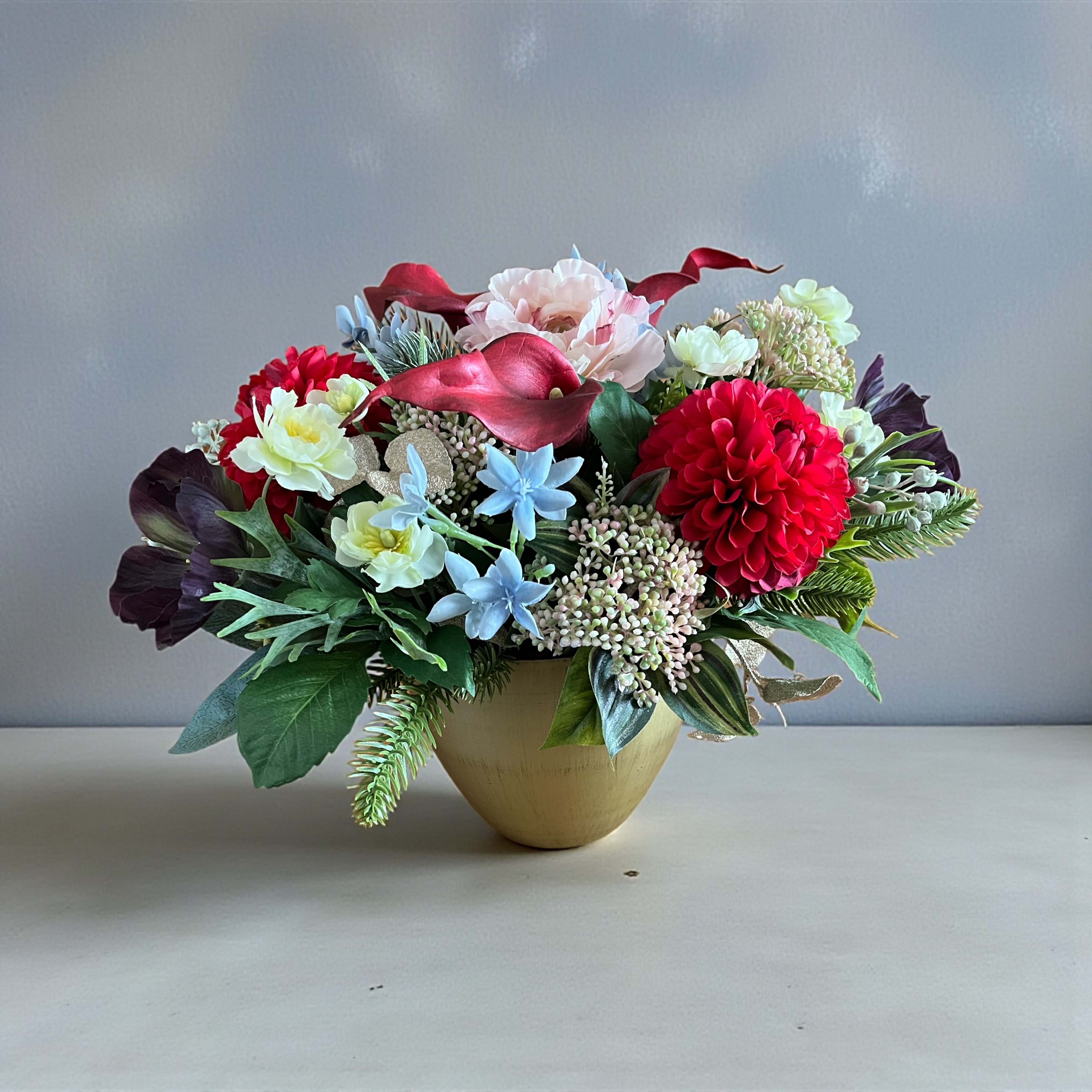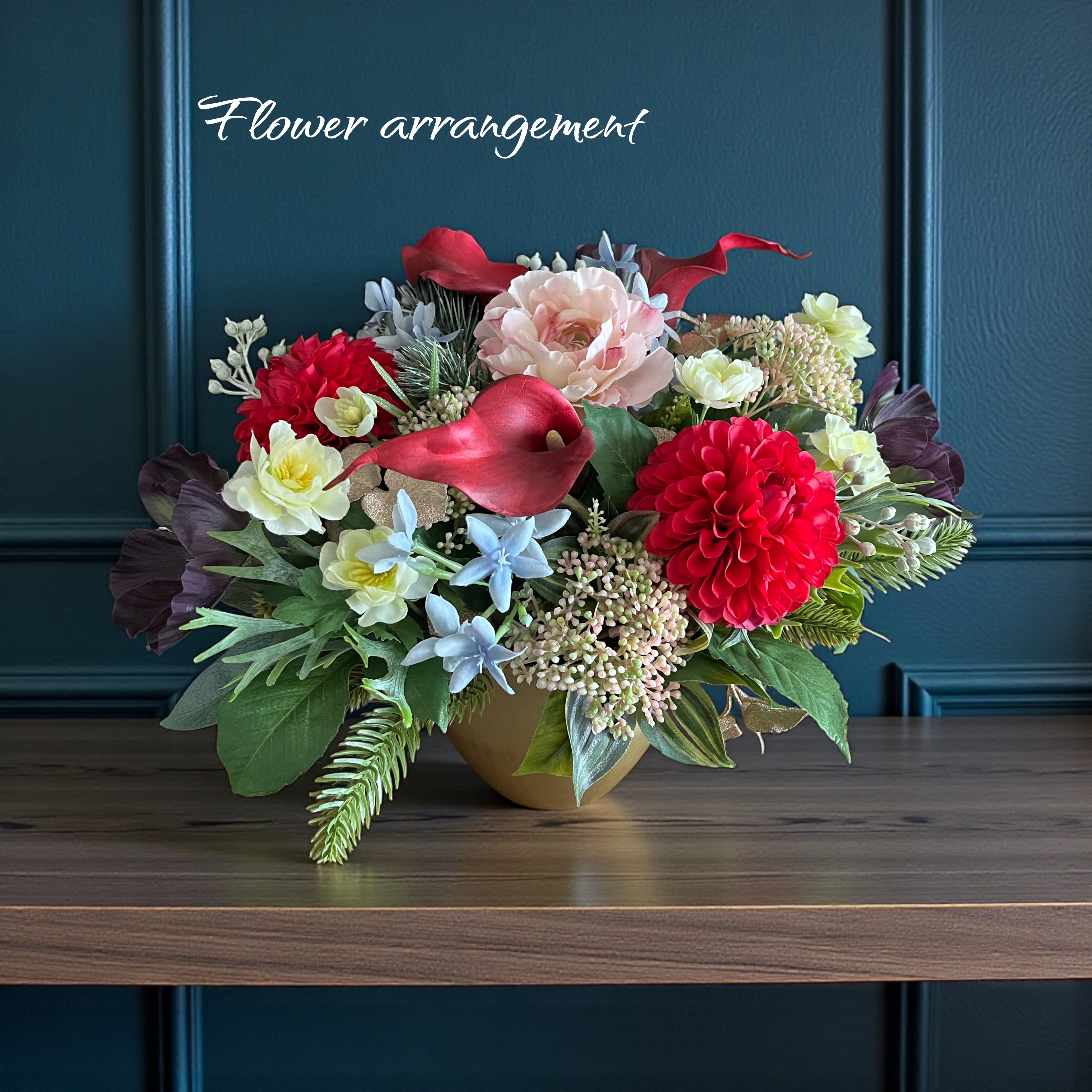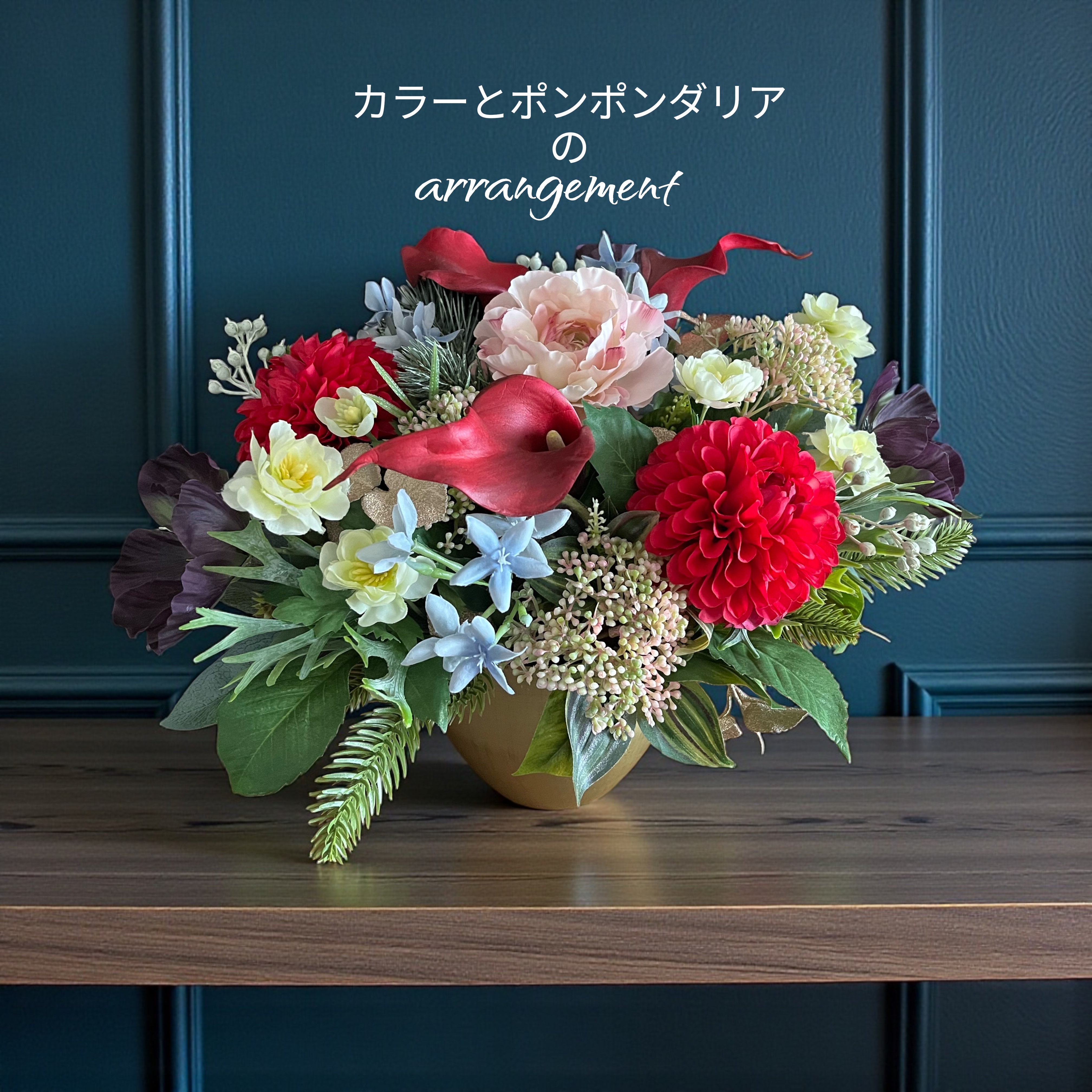 華やかでエレガントな真紅のお花、人気のダリア、カラーのお花はまるで生花のように