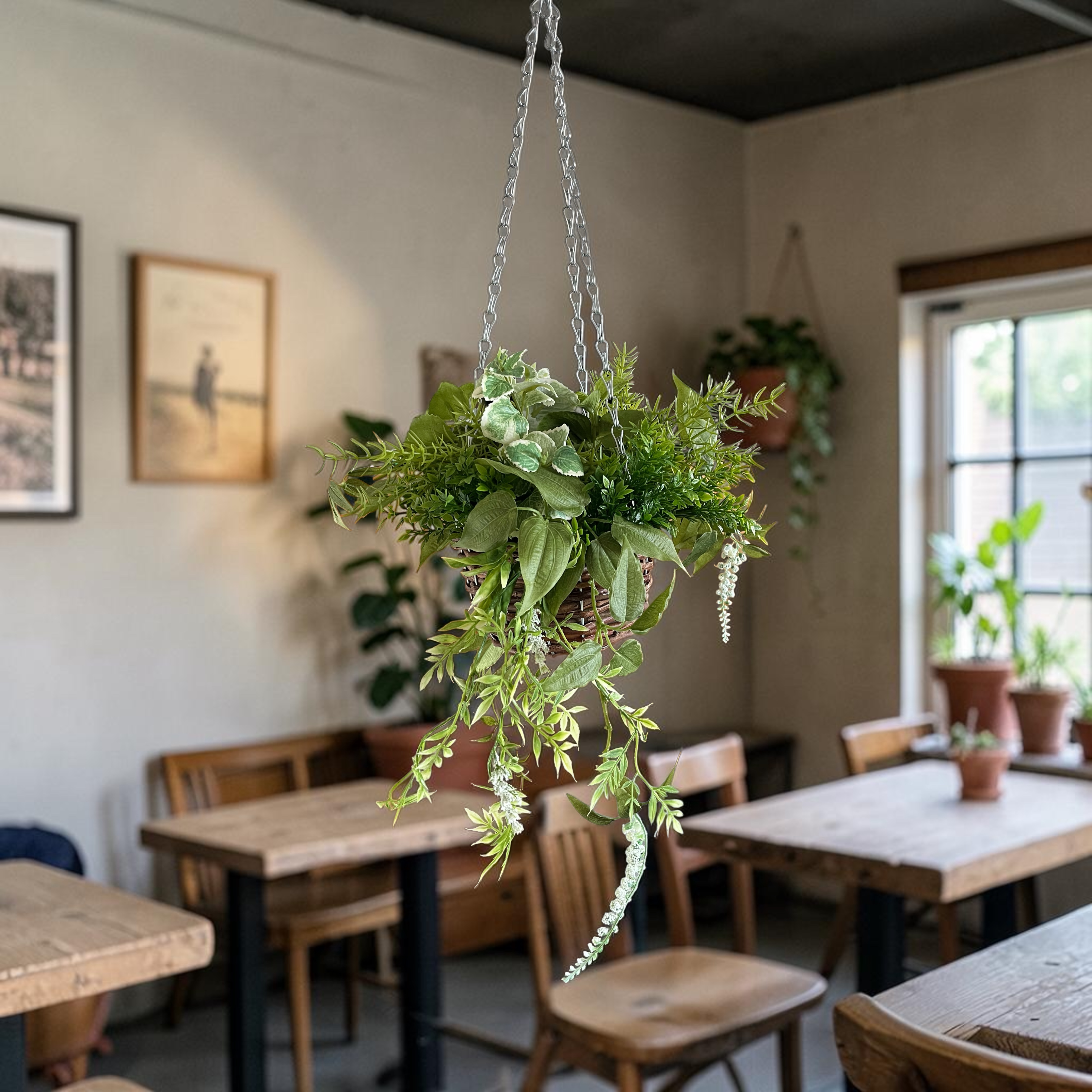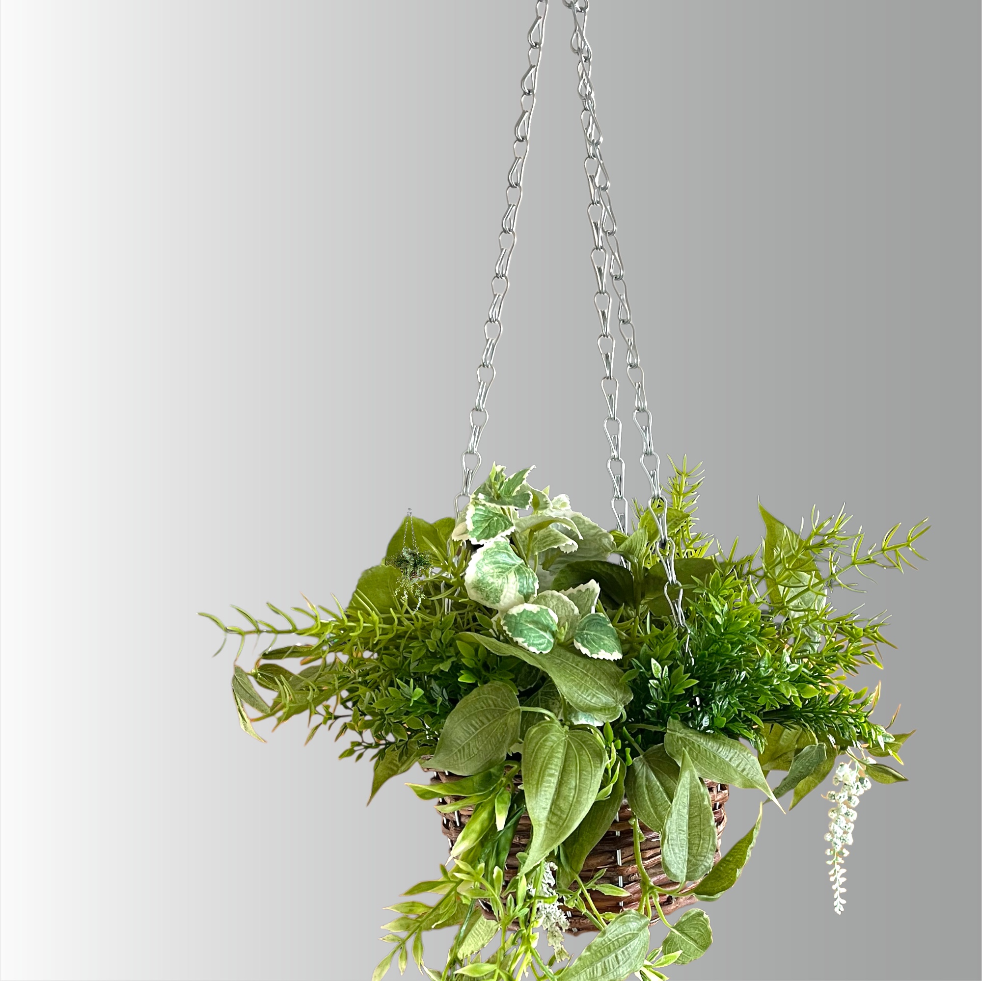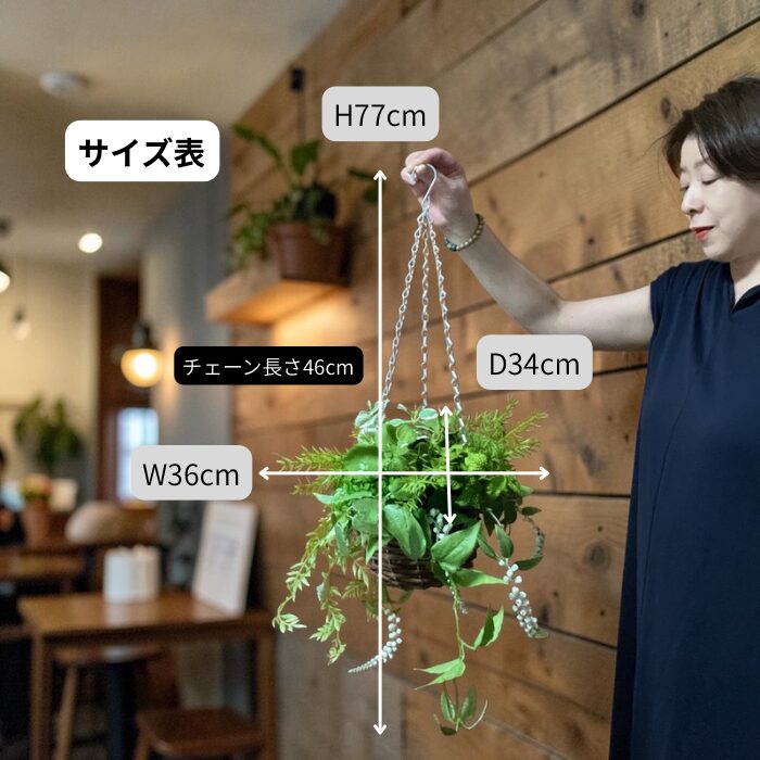 全体的に涼しげな雰囲気のハンギングはリビングやガーデンの軒下などに吊るして、明るいグリーンをお楽しみ頂ければ嬉しいです。