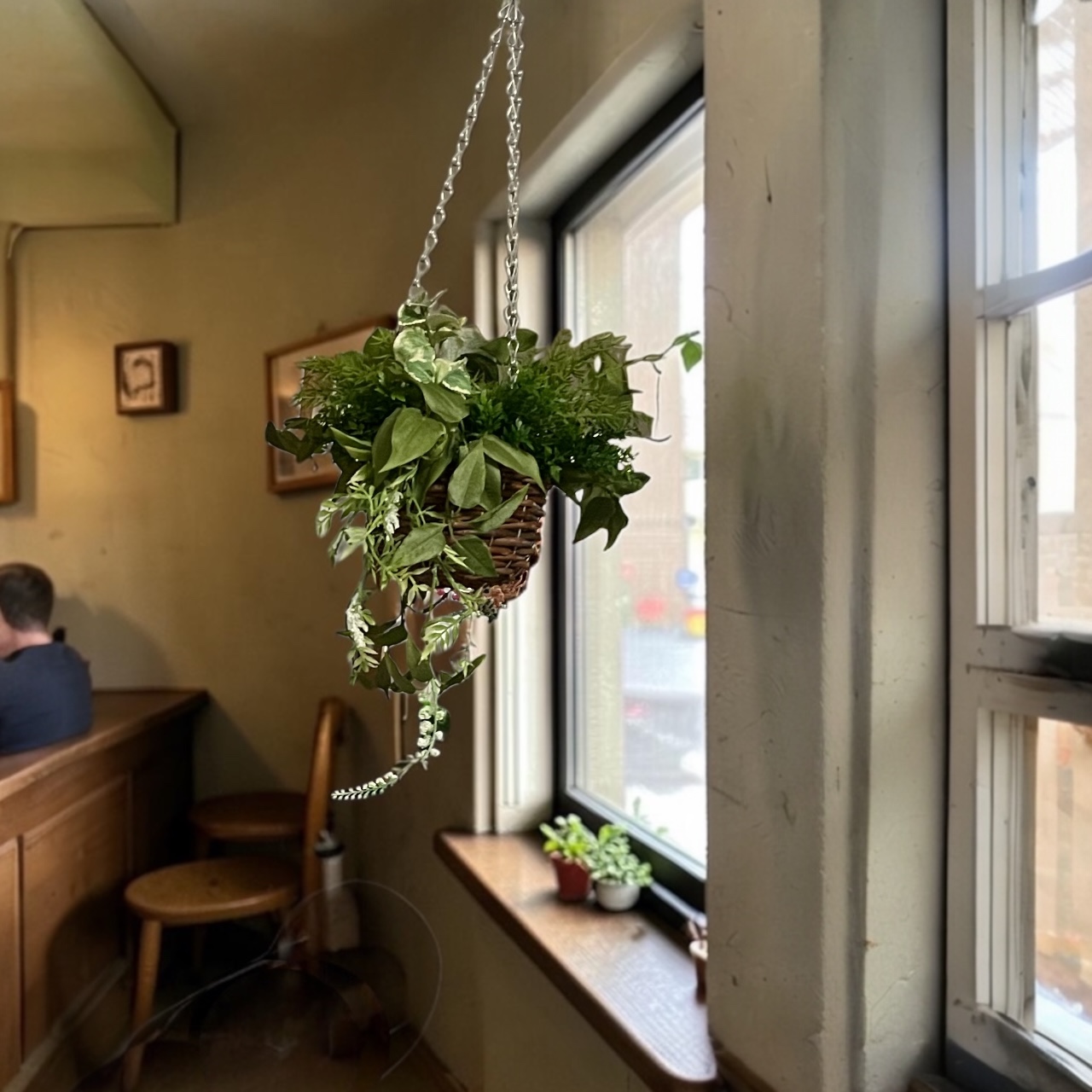 こんにちは。フラワーパレットデザイナーのナカムラです。作品をご覧頂きありがとうございます。わたしも吊り鉢・ハンギングが大好き!お家の中の空調のパイプが剥き出しになっているので😅そのパイプにSカンを引っ掛けてフェイクグリーンを楽しんでいます。
